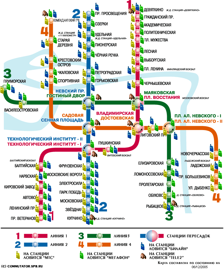 Карта покрытия GSM операторов в Петербургском метрополитене